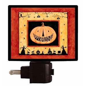 Product Description : This is a very fun Halloween night light! The image is by talented artist Halloween Night. This light makes a very unique gift and perfect as a stocking stuffer, office gift, or grab bag gift. This is a very popular light and will look great in any room in your house! This photographic image is printed in the USA using high quality inks. **PLEASE NOTE** Unlike cheaper night lights, the light bulb on these decorative lights are fully enclosed! No more seeing an exposed bulb when looking at the night light from the side. You'll love the richness of the light as it provides you with both safety and improved visual attractiveness. All night lights sold on Amazon are available with either incandescent or LED bulbs. There are separate listings for each bulb type. This is an extremely well built and solid unit!. Base unit (switch) may differ slightly from item pictured. Please visit our Night Light Designs Storefront on Amazon for our full selection of photo night lights!