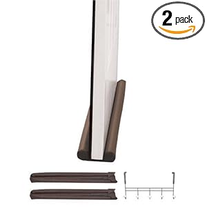 Product Description : From the ManufacturerTwin draft guard insulating device is an easy to install draft stopper that protects both sides of doors making it superior to traditional draft stoppers in conserving energy thus reducing home heating and air conditioning bills. Save 12 to 15-Percent on your heating bills with this economical patented device by insulating front, back, basement, and doors leading to the garage, bulkhead, or unoccupied rooms. Product cost recouped with energy savings during the first month of use. Quick and easy to install device slides under door and protects both sides with high density insulating foam. Moves with the door; no repositioning needed; works while you are out. Device helps keep out drafts, dust, insects, odors, and noise. Use on both interior and exterior doors. Easily slides over carpet or hard surface flooring. Outer cover is machine washable. Energy saver fits doors up to 36-Inch wide. Chrome-plated steel rack has porcelain finials. Rack hangs from top of door; no mounting screws required. Set of 2 twin draft guards shipped . Product Description : Particularly good for people not wanting to tackle the challenge of installing a permanent door sweep, the Hampton Direct Twin Draft Guard is quicker to install than a door sweep, and easier to use than a conventional draft dodger (draft snake). To install the Twin Draft Guard, simply cut the two sets of included foam tubes to the needed length, insert into the two connected fabric sleeves, and slide under the door. When the door is closed, with a foam tube on either side of the door, air infiltration/exfiltratrion beneath the door will be reduced. When the door is opened and closed, unlike individual draft dodgers that need to be respositioned, the Twin Draft Guard will stay with the door, gliding easily over the floor. The length of the Twin Draft Guard is 35 inches long, and may be easily cut to fit smaller doors. The diameter of the foam tubes is 1.5 inches. It is machine washable, and suitable for use over carpet, wood, tile, or linoleum floors. The color is brown.