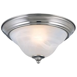 Product Description : From the Manufacturer13-Inch by 6 1/2-Inch brushed nickel 2 light flush mount ceiling fixture. Product Description : Glass:Alabaster, Finish:Brushed Nickel, Light Bulb:(2)60w A19 Med F Incand Hardware House LLC offers many high quality products and our standards are high and have to meet or exceed other leading brands in laboratory tests.