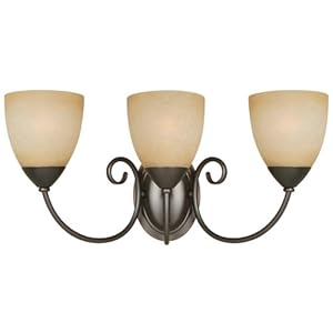 Vendor: Three-light bathroom wall fixture From the Berkshire series Classic bronze finish with amber glass shades Dimensions: 2-1/4 inc