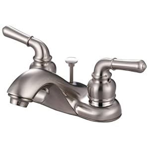 Category: Tools & Home Improvement Vendor: 4-Inch center Brass and Copper water ways Quarter turn washer less valves With pop-up America Disabilities Association approved Product Description : From the ManufacturerHardware House LLC H10-7334 Artesian Two Handle Lavatory Faucet with Pop-up, Satin Nickel.